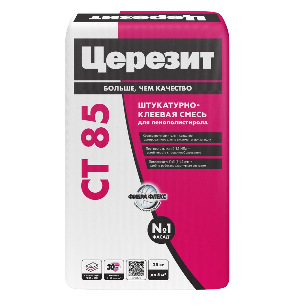 Описание товара: "Штукатурно-клеевая смесь Ceresit СТ 85 для пенополистирола (25 кг)"