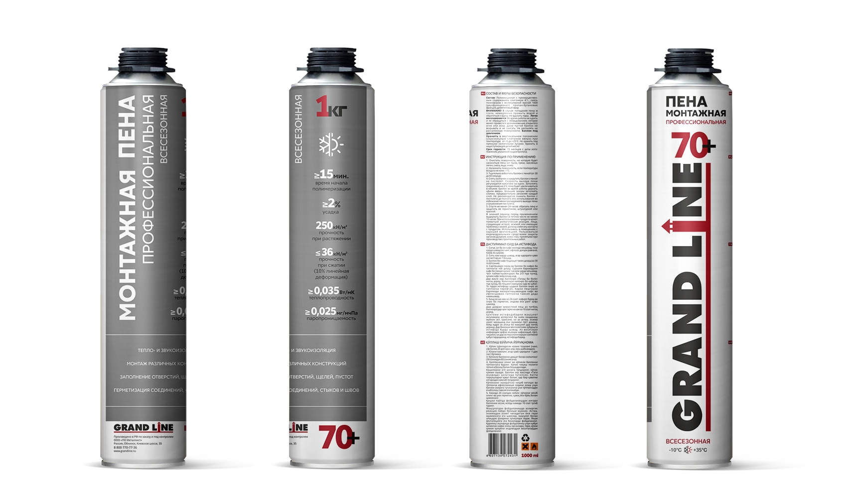 Пена монтажная профессиональная Grand Line 70+ всесезонная, 870мл