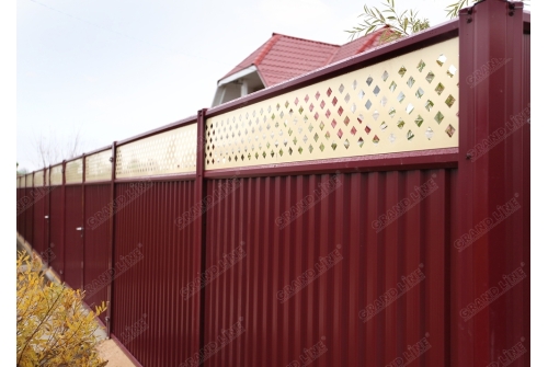 Новое сочетание забора-жалюзи и элементов модульного ограждения, позволяющее сократить расходы на подсистему до 30% за счёт крепления ламелей сразу на стойку без столбов.