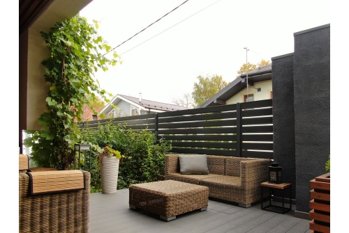 Используя декоративную накладку, ваше ограждение будет выглядеть эстетично, образуя единую цветовую гамму.