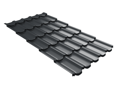 Металлочерепица квинта плюс Grand Line c 3D резом 0,5 PurLite Matt RAL 7016 антрацитово-серый