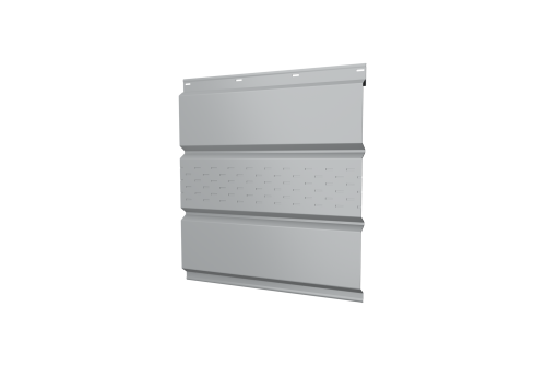 Описание товара: "Софит металлический центральная перфорация 0,45 Drap с пленкой RAL 7004 сигнальный серый"